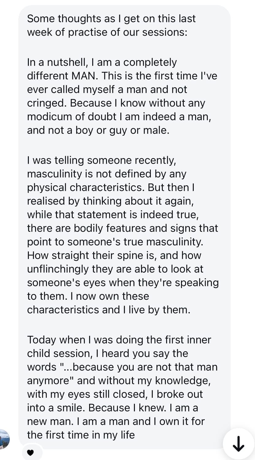 Most therapy and self-help approaches stay at the intellectual level. Nice Guy patterns live deeper, in the nervous system and identity. This course works where logic alone cannot. It combines nervous-system regulation, identity restructuring, boundary installation, and hypnotherapy to create lasting behavioral change rather than temporary insight.