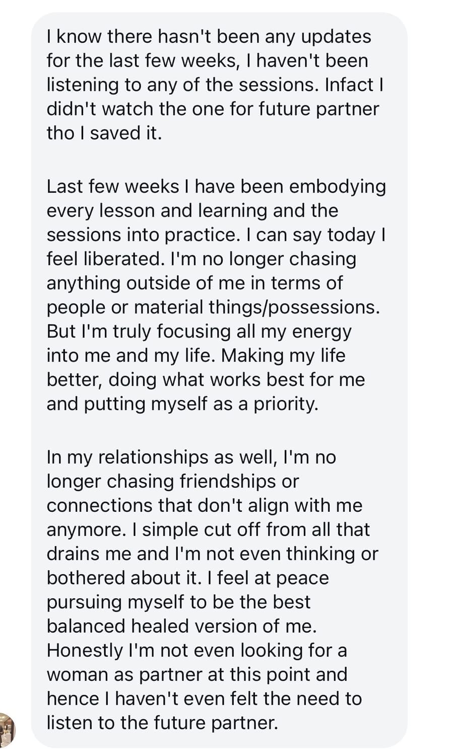 This course does not promise to save or end any relationship. Instead, it changes how you show up. Some relationships improve as you stop self-abandoning. Others naturally fall away when they no longer align with your standards. Either outcome leads to greater self-respect, clarity, and emotional stability.