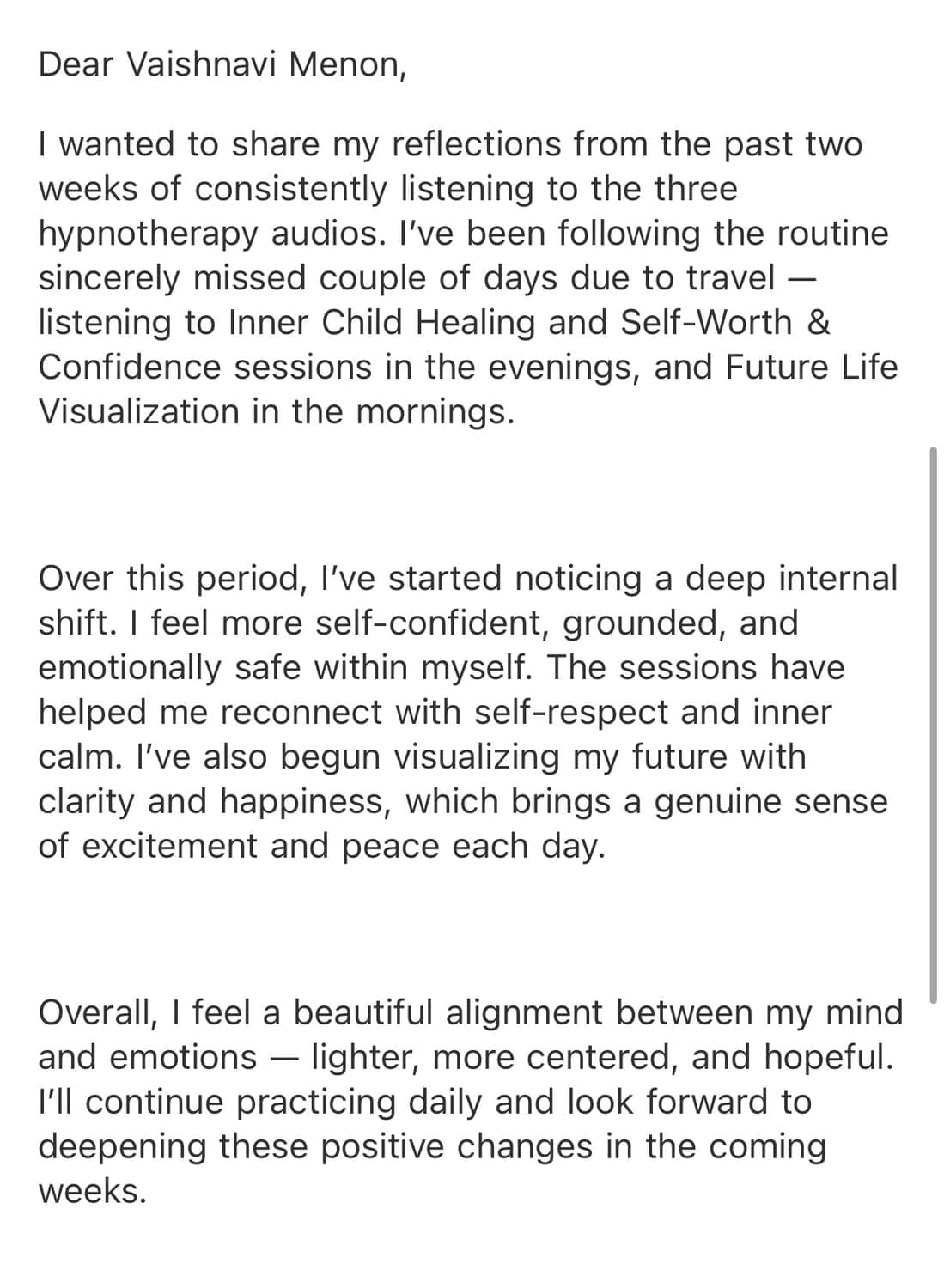 CLIENT FEEDBACK AFTER WORKING WITH VAISHNAVI